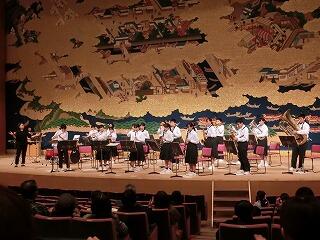本年度、延岡中では、消防署・延岡市危機管理課の方々のご協力を得ながら、防災・減災学習に取り組んでいます。また、地域避難訓練では、消防団の方々にもお世話になりました。日頃からも消防団の方々のおかげで安心した生活を送ることができています。音楽をとおして、日頃の感謝の気持ちを伝えようということで、30分間のオープニング演奏を行いました。