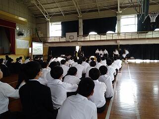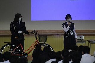 本日は、交通安全教室を行いました。講師に延岡警察署交通課警部補様、交通安全指導員様をお迎えし、交通モラルの意識を高め、安全な通学をできるように講話をしていただきました。安全のためにルールをしっかりと守っていきたいですね。自転車点検の「ブタベルサハラ」も忘れずに、安全な自転車運転も心がけます。