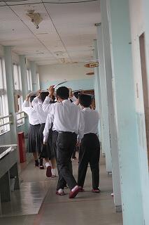 本日は避難訓練(地震・津波・洪水)を行いました。前半は、避難学習を行い、地震、洪水、水害について学習しました。地震発生時の行動、避難経路の確認を行い、実際に避難をしました。大変スムーズに避難をすることができました。最近地震が頻発しています。自分の命は自分で守れるよう備えをしっかりとしておきましょう。