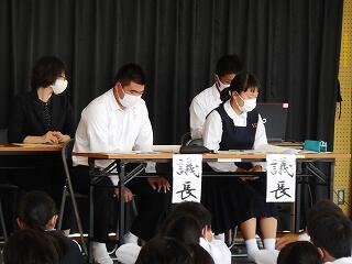 本日は火曜校時の6時間授業です。5・6校時は生徒総会です。本校のこれから1年間の生徒会活動の方針を決めていきます。