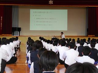本日は6時間授業です。5・6時間目に北部教育事務所1UPサークル(授業研究サークル)の研究授業が1年1組の理科の時間に実施されます。6時間目は後期の清掃場所変更のための清掃オリエンテーションを行います。