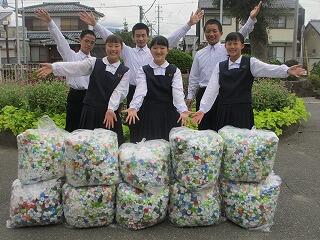先日、本校の生徒会活動として集めたペットボトルキャップを生徒会役員の皆さんがイオン九州株式会社に届けました。キャップの回収重量は72.5キロで、ポリオワクチンの18人分に相当する量を届けることができました。回収に協力してくれた全校生徒の皆さん、キャップを集め、届けてくれた生徒会の皆さん、ありがとうございました。