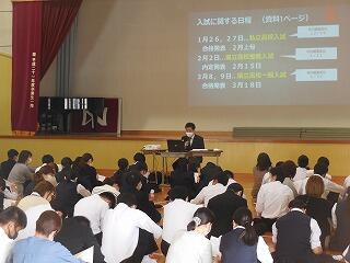 (下、午後の入試制度説明会の様子です。今回から、県立の推薦入試制度が変更になります。保護者の皆さんも一緒に話を聞きました)