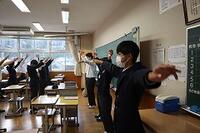保体委員会の取組として、今日から朝の時間を使って、ラジオ体操が行われました。ラジオ体操を朝にすることは、脳を起こすことにも役に立ち、学習に良い効果がありますので、しっかり行って1時間目の授業に臨みましょう。