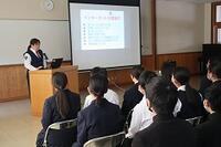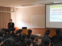 3年生の総合的な学習の時間で、大分大学 教育学部 教授 麻生 雄治先生をお招きして、「大学についての進路講話」を行いました。大学での学習全般のイメージをもたせることで、自分自身の希望する高校への進路との兼ね合いや高校卒業後の上級学校を知ることを目的として実施しました。前半は大学の大まかな説明、後半は事前に生徒から集めた58種類の質問に丁寧に答えていただきました。大学についてあまり考えていなかった生徒も今回の講話を聞いて、大学進学を考えたいと感じる人もいました。