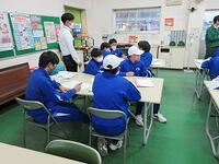 3年3組は清本鉄工の方が講師として特別授業を行って頂きました。3組の生徒たちはバスで清本鉄工の会社があるところへ移動して、そこで学習をしました。