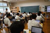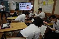 この日の5時間目は2年1組教室で、指導教諭である山本先生による公開授業が行われました。本校の先生や他校の先生などが公開授業を参観しました。山本先生の授業は一人一台タブレットをフルに活用し、生徒同士の主体的・対話的な学びを実現していました。また、昨今の英語で求められるスピーキングやリスニングについても、授業の中で押さえており、大変素晴らしい授業でした。