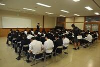明日から行われる県立一般入試に向けて、直前指導を行いました。全体で明日に向けて確認した後、各受検校のグループに分かれてそれぞれの担当の先生から持ち物や心構えについて連絡がありました。