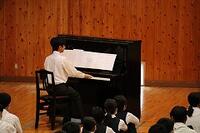 5・6時間目の総合の時間に鑑賞教室が行われました。今年度は室内楽ということで、バイオリン・ビオラ・ピアノの三重奏を鑑賞しました。1部の途中では2名の生徒がバイオリンを体験したり、2部では質問コーナーがあったりと充実した時間でした。最後は恒富中学校の校歌をアレンジで弾いていただき、生徒がそれに合わせて合唱しました。