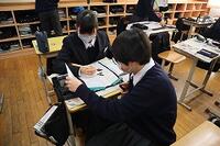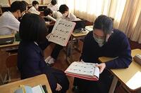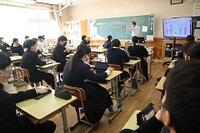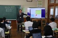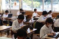 この日の5時間目は2年1組教室で、指導教諭である山本先生による公開授業が行われました。本校の先生や他校の先生などが公開授業を参観しました。山本先生の授業は一人一台タブレットをフルに活用し、生徒同士の主体的・対話的な学びを実現していました。また、昨今の英語で求められるスピーキングやリスニングについても、授業の中で押さえており、大変素晴らしい授業でした。