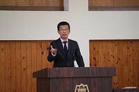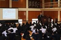総合的な学習の時間に3年生は大分大学の麻生雄治教授をお招きして、大学についての進路講話を行いました。大学や専門学校まで進学して就職する人が増えつつある日本社会において、このような講話は3年生にとって良い機会になったと思います。これから高校入試に向けて、進路を固めていきますが、ムーンバック形式で先に大学に行くか行かないか、行くならどこの大学に行くかなどゴールを決めておくと、自分の行くべき高校が見えてくると思います。先を見通した受検を意識していきましょう。
