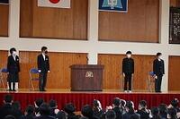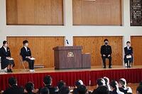 あけましておめでとうございます。今年もよろしくお願いします。さて、3学期の始業式は各学年代表者1名と生徒会代表1名による「3学期の抱負」が述べられました。3学期はまとめの学期であると同時に次の学年に向けての0学期です。各々しっかりと目標・抱負をもって過ごしていきましょう。