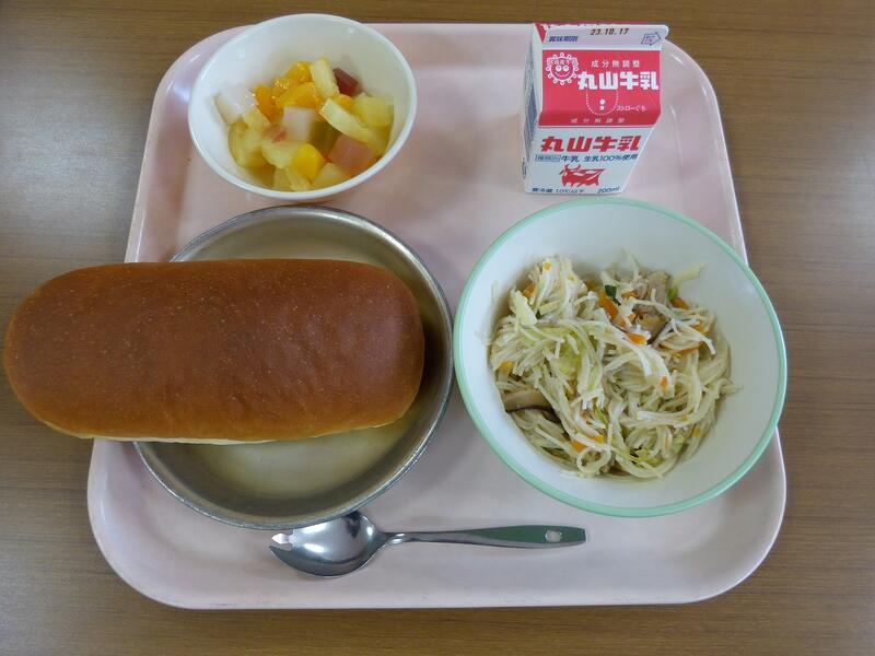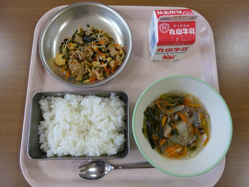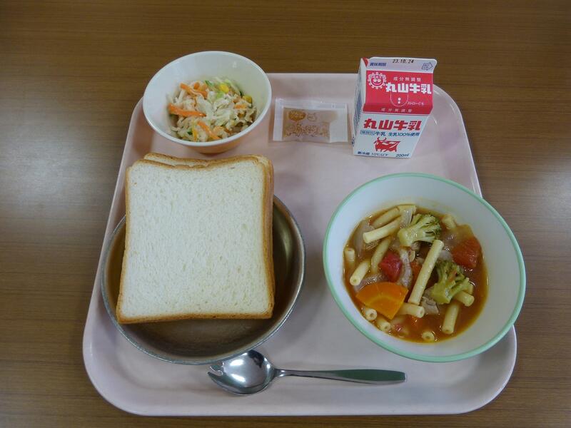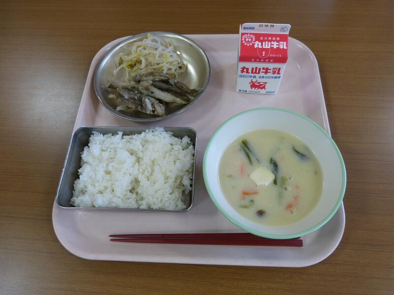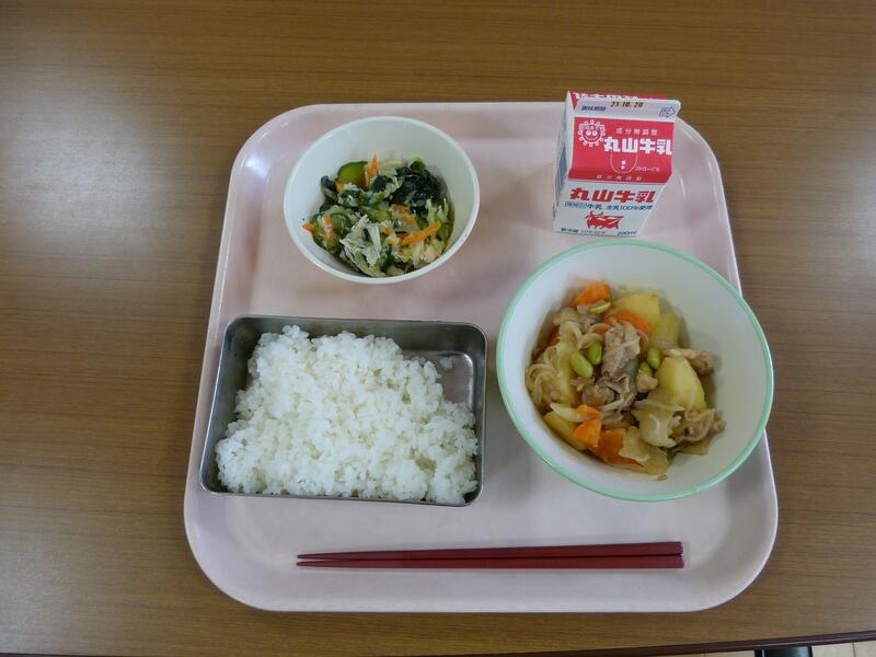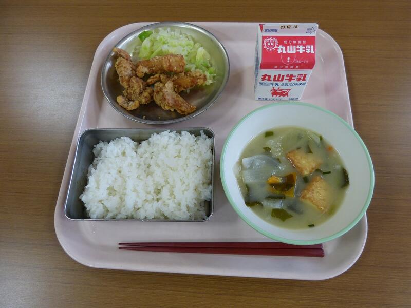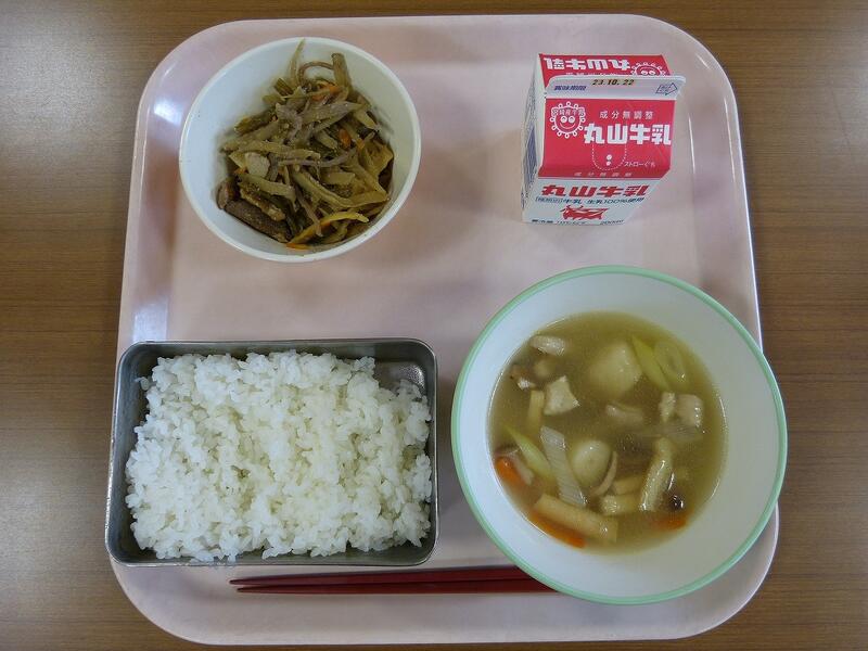 今日の給食は、食物繊維が豊富なゴボウやたけのこなどお腹の調子を整える食品をたくさん使っています。これから寒くなってきて体調を崩す人が多くなってくる季節に入ります。好き嫌いせずに規則正しい生活を心がけて元気な体を作りましょう。