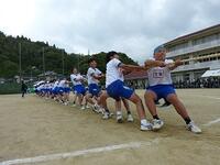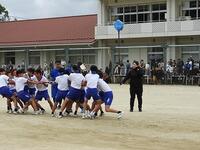 天気が心配でしたが、生徒たちの頑張りのおかげか、無事、体育大会を開催することができました。雨でグラウンドの状態が十分でないなか、一生懸命競技に取り組んでいました。また、全員が大きな声と振りで応援を行い、団を盛り上げていました。