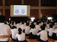 5月24日(金)に交通安全教室が行われました。延岡警察署の方が講師として来てくださり、自転車に乗るときのルールを学びました。自分や相手が事故に遭わないように、これまで以上に交通安全に気を付けていきましょう。