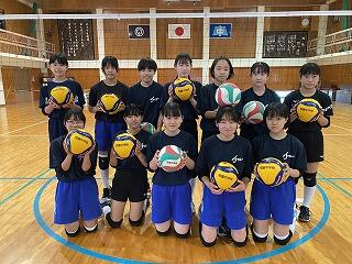 私たち、女子バレーボール部は、2年生9名、1年生3名、計12名で活動しています。現在、県大会出場を目標に苦手なところを改善するため、日々の練習を頑張っています!