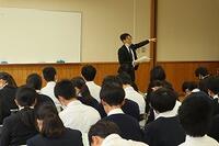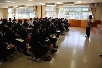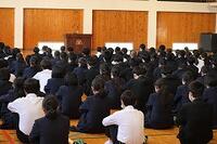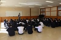 延岡を創り・育て・発展させた延岡の偉人たちについて、生徒たちはメモを取りながら、真剣に講話を聞いていました。
