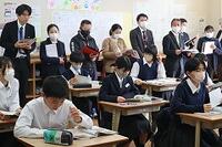 明日にある卒業式に向けて、在校生のみで一度通しの練習を行いました。今年度から在校生も参加する形式に戻すことができます。しっかりとした姿勢で卒業生を見送りましょう。