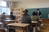 明日から行われる県立一般入試に向けて、直前指導を行いました。全体で明日に向けて確認した後、各受検校のグループに分かれてそれぞれの担当の先生から持ち物や心構えについて連絡がありました。