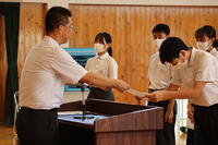全校生徒が体育館に集まって修了式を実施しました。各学年、生徒会の代表生徒から1年間を振り返っての作文発表があり、次の年度に向けての目標を話してくれました。また、永山校長先生から修了証が各学年の代表生徒へ授与されました。永山校長先生からの話では前向きな考え方をすることの大切さについて話がありました。その後、全校集会が開かれ、春休みの過ごし方や次の年度に向けての学習面と生活面についてしっかりと話を聞いていました。