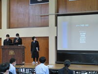 学年集会が行われ、各学年のプログラム委員会が中心となり、集会を進めていました。1年生は休み時間の過ごし方について、2年生は学年末テストの学習のポイントについて、3年生は高校入試についての話がありました。各学年のプログラム委員会の成長を感じることができました。