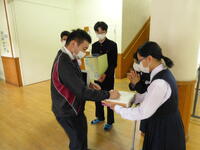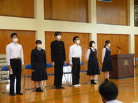 旧生徒会役員の皆さん、恒富中学校のために一生懸命に活動していただきありがとうございました。新生徒会役員の皆さんはみんなで協力しながら、恒富中学校のさらなる飛躍のために取り組んでください。