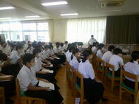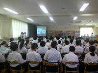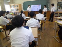 2年生は図書室で、「FC延岡AGATA桑原英一代表」を講師にお招きし、「よのなか教室」を開催しました。①夢をもつことの大切さ、②あきらめなければ夢は叶う、③大きな目標を掲げることで自分の力に変えることができるなどのお話がありました。また、桑原さん自身の夢も語っていただきました。夕刊デイリーの取材もありがとうございました。