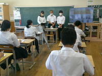 今回は、延岡市観光協会の岩本普長さんをお招きし、「延岡の観光について」ご講話いただきました。コロナ禍での延岡の観光戦略の苦労や工夫したことなどの話に、生徒はメモをとりながら真剣に聞き入っていました。