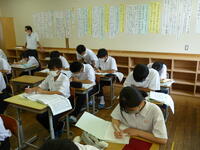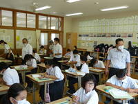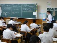 本校では、教職員1人ひとりの授業力向上のために、他教科とのチームを組み、研究授業を行っています。本日は1年生の数学科の授業の研修授業が行われました。同じ問題に対しても、1人ひとり、様々な方法で答えを導きだそうとする姿勢が見られました。