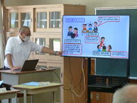 地区の公民館長さんや区長さんをお招きし、「地域懇談会・給食試食会」を行いました。生徒の人気メニュー「たこ焼き風揚げ」等を試食していただきましたが、とても好評でした。ZOOMによる授業等の参観では、本校卒業生の区長さんも驚かれていました。懇談会では、コミュニティ・スクールの仕組みや今後の地域活動等について確認をしました。