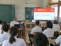 今回の総合的な学習の時間に、永友紀章宮崎大学准教授と梅村嵩志JICA特別委託宮崎大学講師、藤江顕サンシャインアカデミー代表をお招きし、「JICAとSDGs」、「この国、どんな国?」についてご講話いただきました。楽しいワークショップもあり、SDGsの学びを「じぶんごと」として考え、世界の現状に目を向ける良い機会となりました。夕刊デイリーさんの取材もありがとうございました。