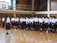地区中学校秋季体育大会に向けて、壮行会が行われました。1・2年生による新チームでの初めての中体連です。今回の選手宣誓は、サッカー部主将によるものでした。