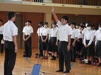 地区中学校秋季体育大会に向けて、壮行会が行われました。1・2年生による新チームでの初めての中体連です。今回の選手宣誓は、サッカー部主将によるものでした。