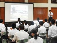 3年生の総合的な学習の時間で、大分大学 教育学部 教授 麻生 雄治先生をお招きして、「大学についての進路講話」を行いました。大学での学習全般のイメージをもたせることで、自分自身の希望する高校への進路との兼ね合いや高校卒業後の上級学校を知ることを目的として実施しました。前半は大学の大まかな説明、後半は事前に生徒から集めた58種類の質問に丁寧に答えていただきました。大学についてあまり考えていなかった生徒も今回の講話を聞いて、大学進学を考えたいと感じる人もいました。