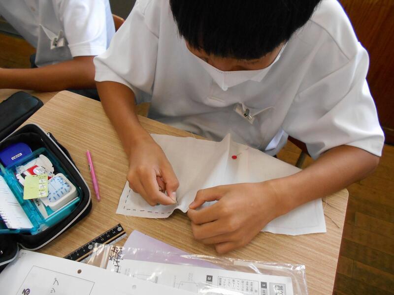 1年生の家庭科の授業では、17日と25日に「ブックカバー作り」をしました。はげまし隊の方もお手伝いに来てくださり、生徒のみなさんは、はげまし隊の方に縫い方を教わりながら、思いを込めて丁寧に仕上げていました。