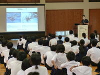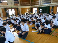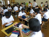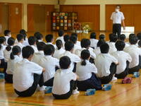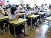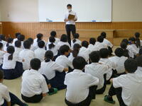 本校では、永山貴久校長先生による命の大切さについての講話を放送で行いました。最初、息をそろえる活動を行い、その後、校長先生が実際に教員として働かれてから経験された水難事故について話を聞いていました。子どもたちは自然をあなどってはいけないことや命がいかに大切かをメモを取りながら真剣に聞いていました。