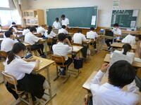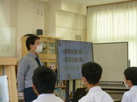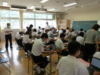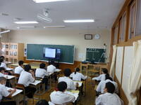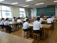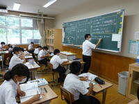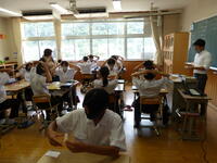 2年3組で山本延久指導教諭による公開授業が行われ、県北の英語科の先生方が授業参観に来られました。生徒たちは緊張することもなく、いつも通り活発に言語活動に取り組んでいました。英語科の先生方も、真剣に取り組む生徒の様子を見て驚いておられました。