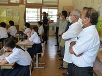 地区の公民館長さんや区長さんをお招きし、「地域懇談会・給食試食会」を行いました。生徒の人気メニュー「たこ焼き風揚げ」等を試食していただきましたが、とても好評でした。ZOOMによる授業等の参観では、本校卒業生の区長さんも驚かれていました。懇談会では、コミュニティ・スクールの仕組みや今後の地域活動等について確認をしました。