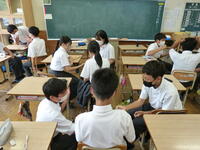 本校では、教職員1人ひとりの授業力向上のために、他教科とのチームを組み、研究授業を行っています。本日は1年生の数学科の授業の研修授業が行われました。同じ問題に対しても、1人ひとり、様々な方法で答えを導きだそうとする姿勢が見られました。