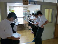 本日1学期が無事終了しました。大清掃ではいつもできないところまで丁寧に無言清掃に取り組むことができました。また、終業式は放送で行い、各担当からの夏休みの過ごし方についての話や、各学年・生徒会の代表による1学期の反省のスピーチが行われました。その後、各学年での学年集会や、各学級での学活が行われました。