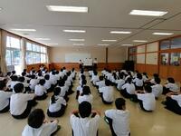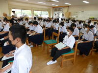 3年生の生徒や保護者の方を対象とした高校説明会が行われました。延岡市内の県立の高校や私立の高校の先生方をお招きして、各高校の特色や進路情報、今からするべきことなどについて話がありました。生徒たちも真剣に聞いていました。各高校でオープンスクールや体験入学が実施されるので、実際に行ってみて、どのような学校かを感じとるといいですね。