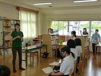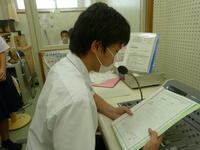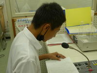 ALTのアイコ・クマノ先生が来校され、スピーキングテストを実施しました。内容は英検の二次試験のようにイラストの説明をしたり、自分自身についての質問に答えたりするというものです。7月の上旬から授業中に練習を重ねていたので、堂々と答えることができており、アイコ先生も驚かれていました。