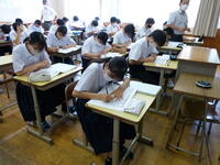 3年生は2回目となる実力テストを本日受けました。本日は国語、理科、英語の3教科を受験し、2日目は社会、数学の2教科となります。3年生は夏休み期間、それぞれ家庭学習を充実させ、自分自身を高めるためにコツコツと努力していました。それぞれの夏休みの頑張りが実を結ぶことを願います。