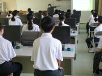 本校では、1人1授業の取組を進め、教職員1人ひとりの授業力向上に努めています。今回は2年生の英語科の授業です。英語を積極的に使いながら、この時間で学習する文法事項を定着させていました。また、Chromebookを使い、分からない表現をしっかりと調べ、単語帳にまとめることができていました。