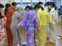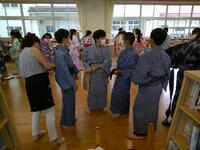 1年生家庭科の授業では「浴衣の着付け」を学習しました。はげまし隊の方々に丁寧な説明をしていただき、楽しい授業となりました。ありがとうございました。