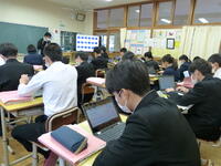 延岡市内の中学校ではAI型学習教材のQubenaを活用して、既習事項の復習などを行っています。本校でも各教科で活用を進めています。3年生の英語科の授業では授業冒頭の数分を使って復習で活用しています。試験問題も実装されているので、高校入試対策でも活用を進めていきます。