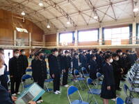 いよいよ明日、卒業式が実施される予定です。卒業式に向けて本日は学年の練習と予行練習を行いました。1,2年生はリモートで卒業式の様子を見る予定ですので、接続テストも行いました。多くの先生方が見守られているので少し緊張している様子でしたが、いつも以上に真剣に取り組んでいました。