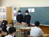 高校入試を先日無事に終えた3年生の代表が2年生に向けて話をしてくれました。内容は受検を終えての反省とこれからの学校生活で大切にしてほしいことについてでした。実際に先輩方の話を聞いて、身を引き締めて頑張ろうと思った人が多くいたようでした。