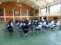 2年生は立志式準備とリハーサルを本番さながらに本日行いました。準備はみんなで協力し、お互いに声を掛け合いながらスムーズに進めることができていました。リハーサルではパネルディスカッション形式でそれぞれのグループが発表を行いました。今回のリハーサルで不十分な点が見つかったと思うので、2月7日(火)の本番しっかりと発表できるよう改善できると良いですね。