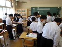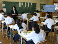 教育実習が始まって3週目に突入しました。本日、1時間目に英語、4時間目に道徳の研究授業を教育実習生の盛永結依さんが行いました。英語の授業ではwhen~(~なとき)、if~(もし~ならば)を使った活動を楽しそうに行っていました。また、道徳の授業では、将来の夢や希望をもつことについて真剣に考える様子が見られました。
